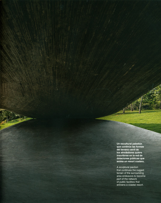 A sculptural pavilion that continues the rugged terrain of the surrounding area endeavors to become part of the network of public facilities that enlivens a coastal resort.